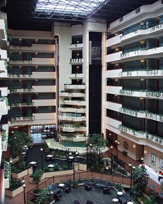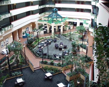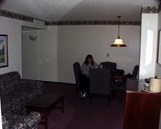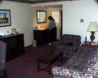 By 3:30pm we are checked into the University Plaza Hotel. When we made our reservations, all they had left were suites. It was not our choice to have such roomy and luxurious accomodations ;-) but we're not complaining. (Check back with us when we have to sign the bill.)
